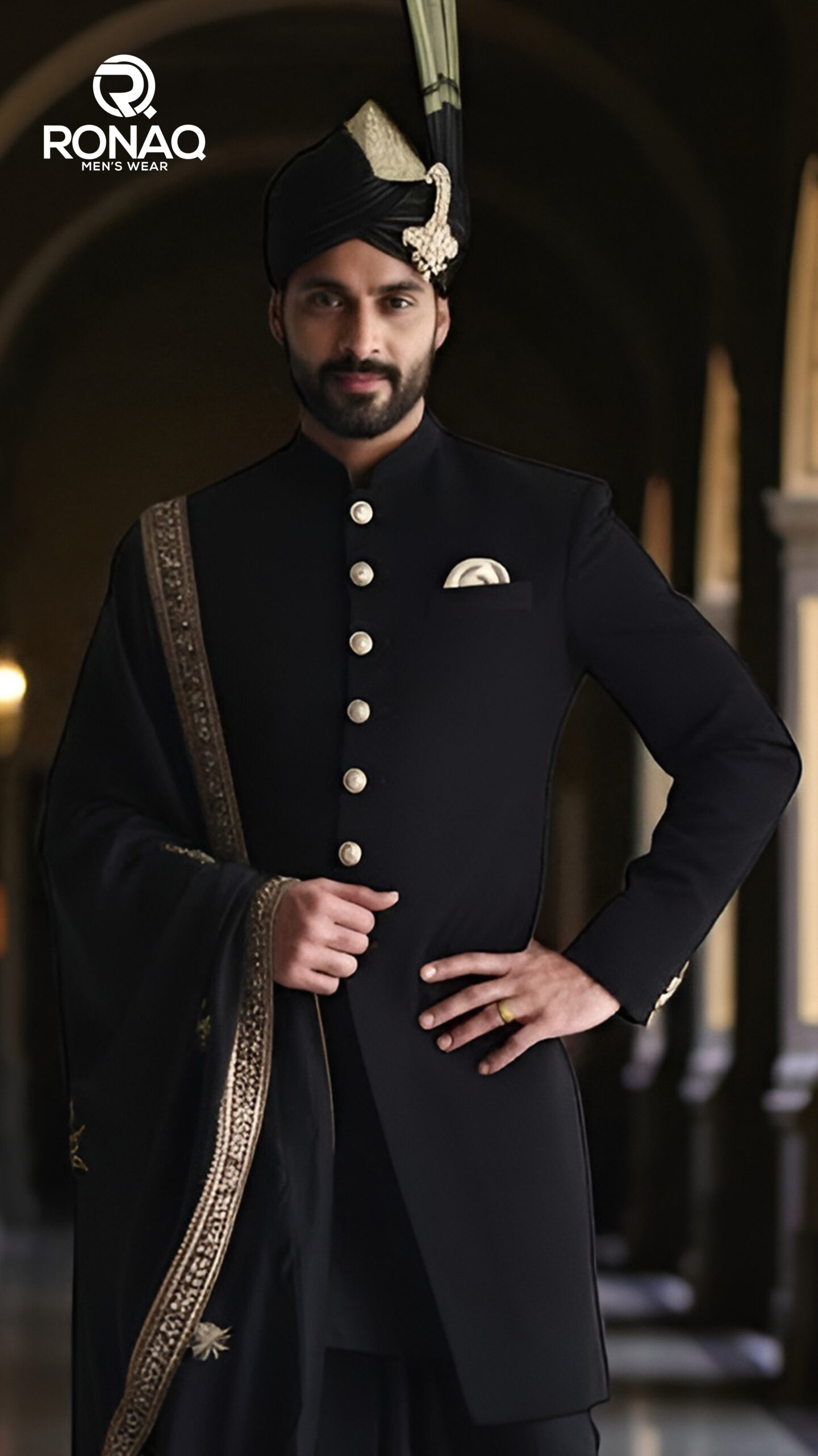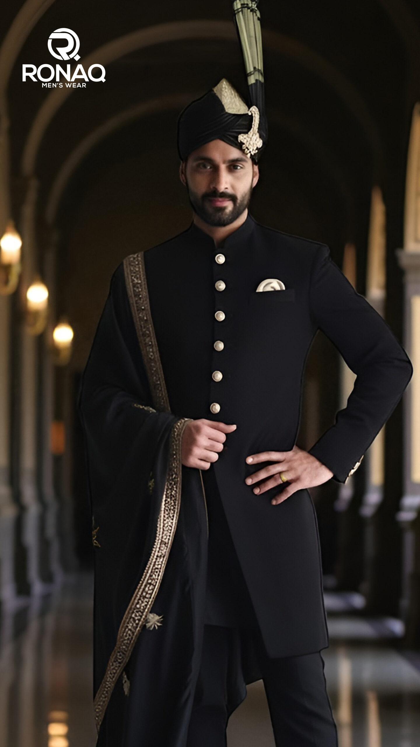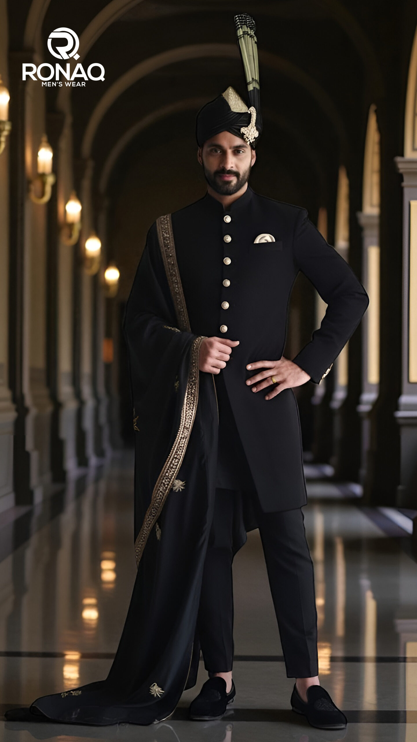 Black Royal Sherwani — dramatic, regal and perfect for evening weddings.