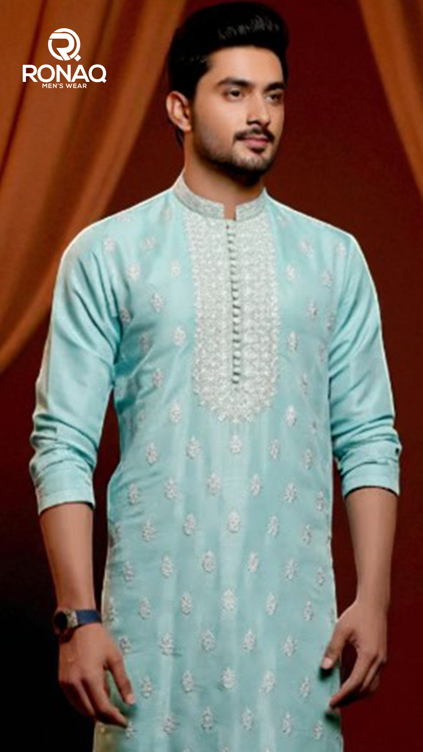 Elegant Sky Blue Kurta — fresh tone with classic embroidery.
