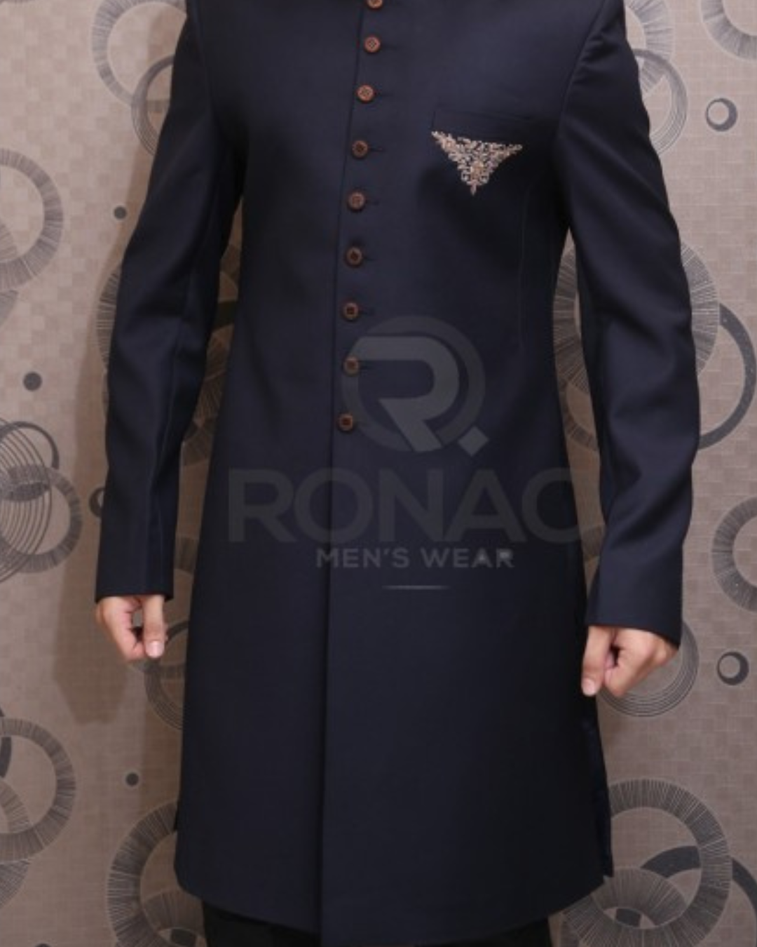Navy Blue Italian Suiting Handwork Motif Sherwani