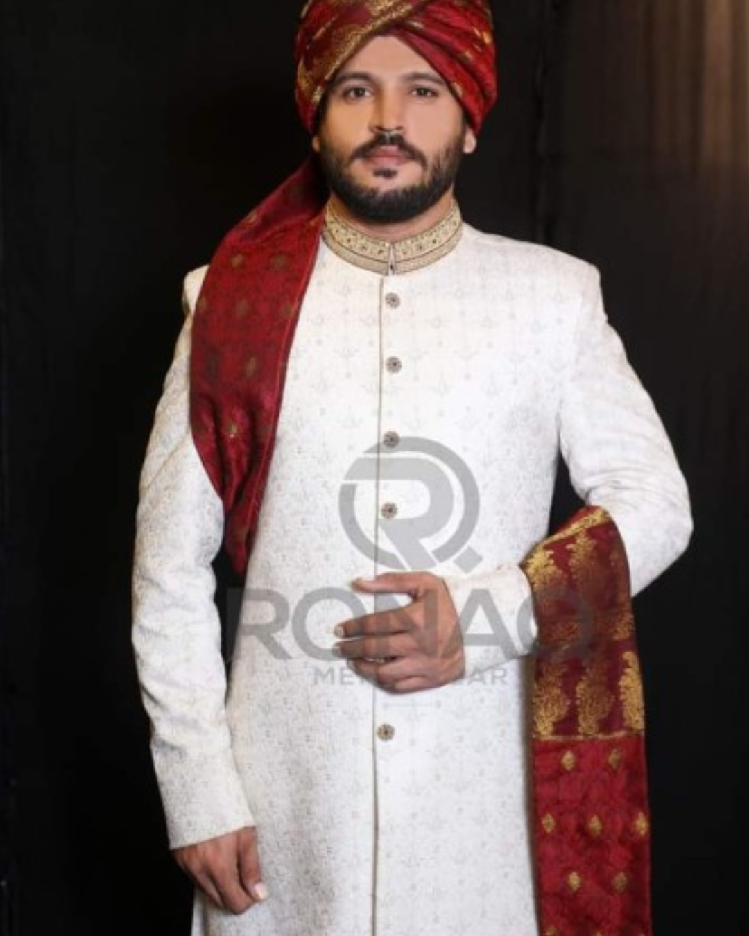Elegant Beige Gold Sherwani with rich embroidery — understated luxury for your big day.