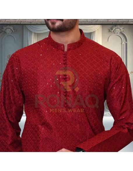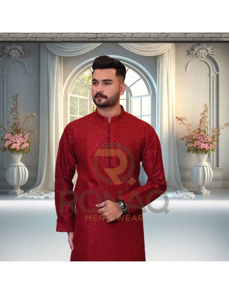 Red Embroidered Kurta
